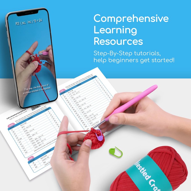 Christmas Crochet Kit for Beginners, Crochet Starter Kits for Kids and Adults Amigurumi Craft Knitting Crochet Animals Kits with Step-by-Step Video Tutorials