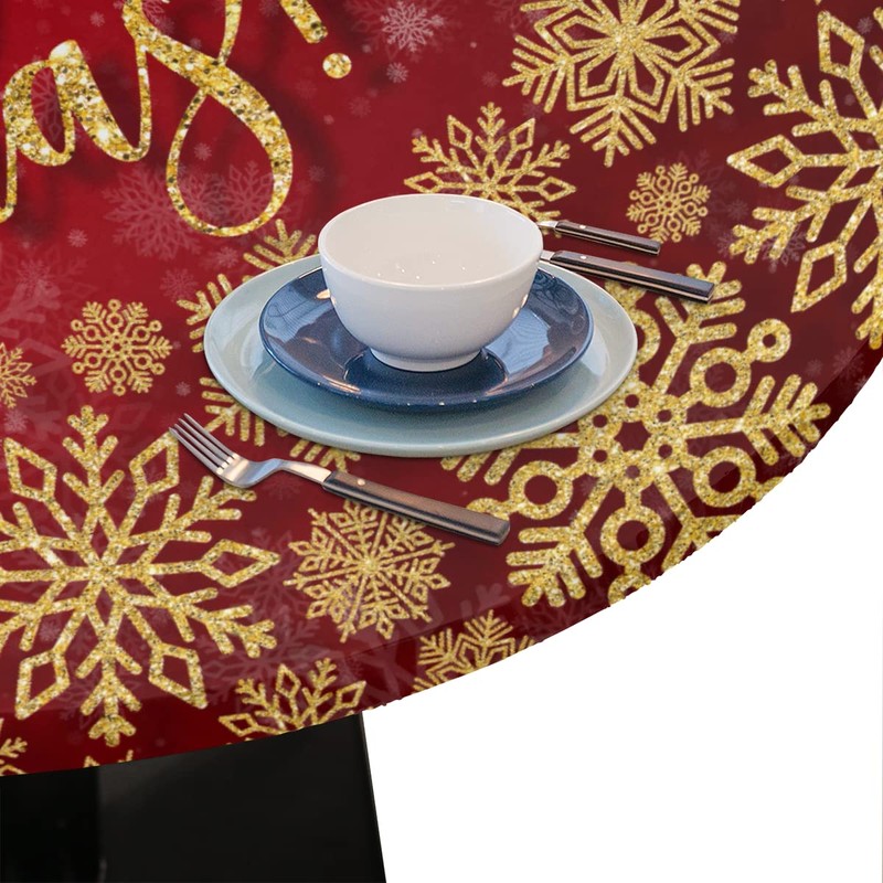 - 【Christmas Party Decoration】: Christmas round elastic table cloth for table for all your indoor or outdoor, parties, fall, fiesta, kitchen, dining room, patio, restaurants, weddings, cafe, picnics, BBQ's, party. The tablecloths will be a good decoration and quality of life for your home.