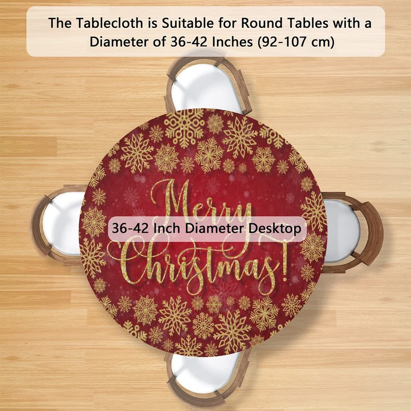 Christmas Decor Elastic Edge Round Tablecloth Xmas Golden Snowflake Fitted Table Cover Wipeable Round Table Cloth for Outdoor Kitchen Dining Table Christmas Party Decoration(Fit for 40"-44" Table)