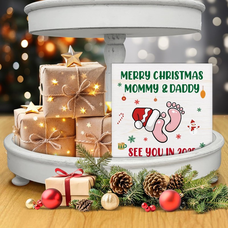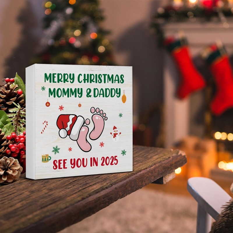 Christmas Decor, Merry Christmas Mommy and Daddy See You in 2025 Decorations, Baby Shower Wooden Sign Rustic Home Decor 5 x 5 Inches
