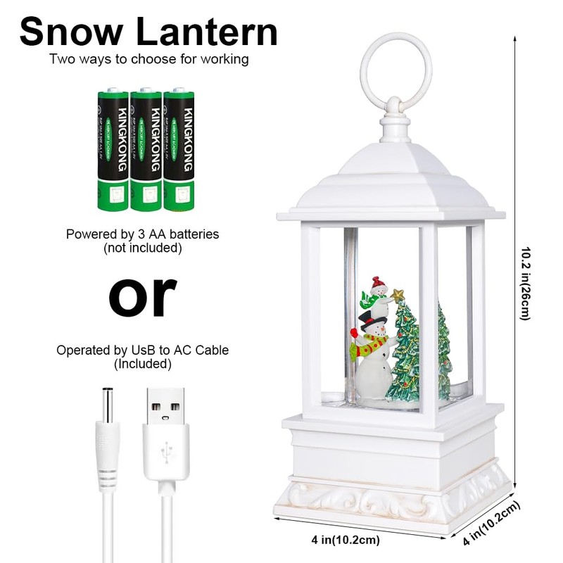 • 【TWO POWER MODES MUSICAL LANTERN】Included USB power cable allows you operate the snow globe without batteries, just provide your own adapter. Or you can use 3 AA batteries (NOT INCLUDE), place it on everywhere you want, it's very convenient and easy to use.