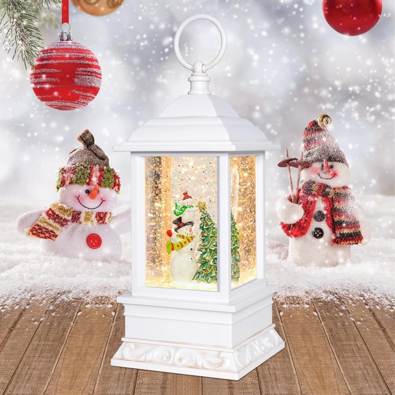 Christmas Decorations Musical Snow Globe Lantern, Glittering Lighted, 6H Timer, White (Two Snowman)
