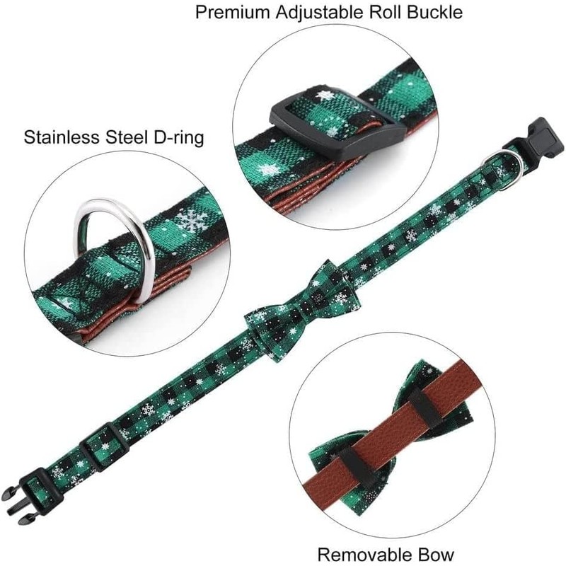- ποΈγπͺπππ π©πππππ π«πππππγThe bowtie is attached to the dog christmas collar with an elastic strap and can be removed as you like. The bow tie is hand-sewn and made of cotton, comfortableand comfy, while nylon one may do harm your pet's skin. It is ideal fun decorative collar set for your loved pets and the snowflake dog collar will make your puppies look charming.