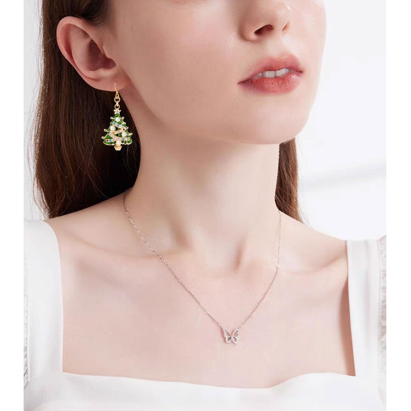- Christmas Tree Earrings: These earrings have a very unique design, Christmas tree shaped, catering to the Christmas atmosphere. The earrings are inlaid with stunning cubic zirconia, which are super charming. Suitable for women girls to wear
