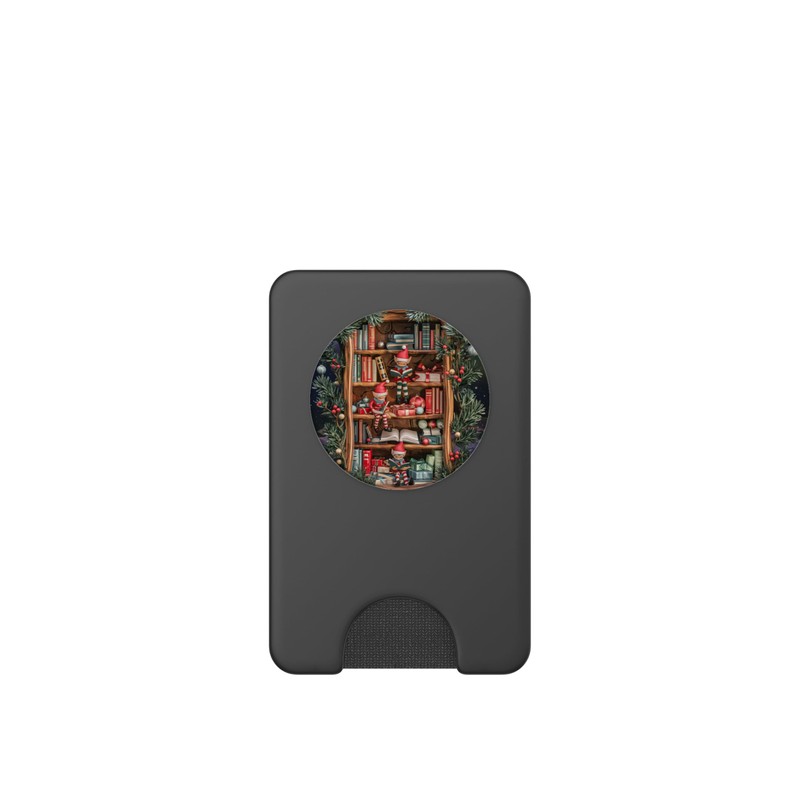 Christmas Elf Nerd Reading Book On Bookshelf Bookish PopSockets PopWallet for MagSafe