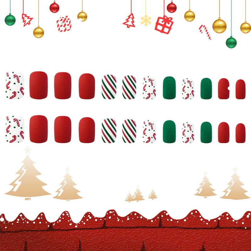 - 【Stick on Nails Kit】Package includes 24pcs stick-on fake nails (12 different sizes assorted), creating a beautiful christmas false nails art for special occasions or every day!