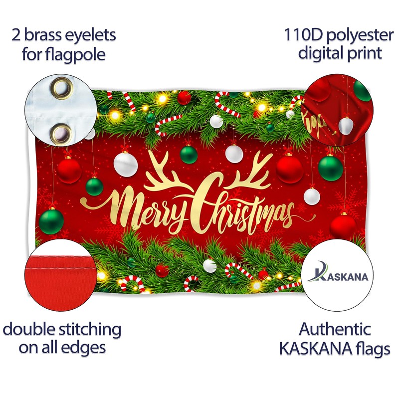 - Durable Material: Christmas flag is made of strong 110D polyester with 2 brass grommets for flagpole attachment. Fabric is double-stitched all around the edges.