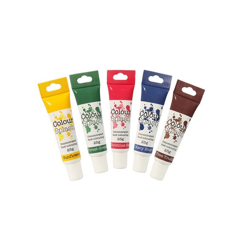 - Transform your plain cakes with our set of Christmas inspired food colouring gels. These highly concentrated gels add instant colour to your icing and cake batters and come in a really easy to use squeezy tube that's perfect for cake decorators of all skill levels.
