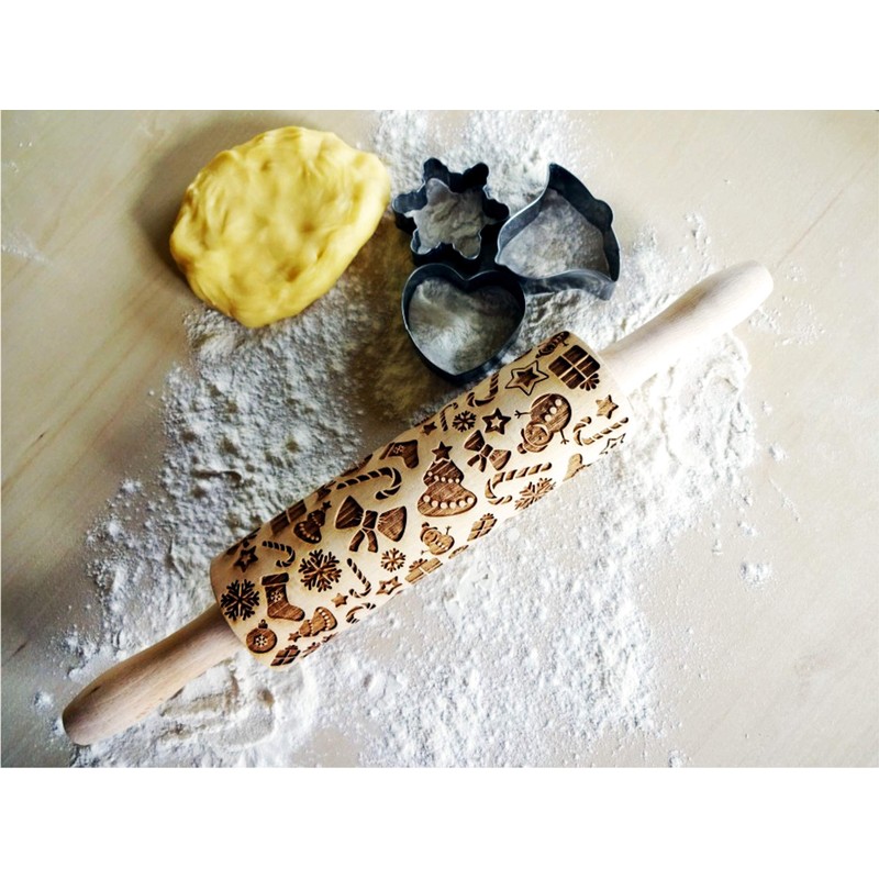CHRISTMAS GIFTS EMBOSSING ROLLING PIN laser engraved with Christmas symbols CHRISTMAS GINGERBREAD COOKIES