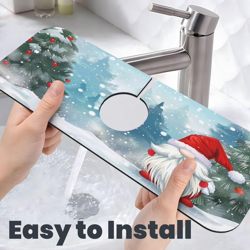 Christmas Gnome Snowflake Kitchen Faucet Suction Pad, 1 Pcs Sink Splash Guard Faucet Mat, Winter Faucet Handle Drip Catcher Tray Drying Mat For Bathroom (15" X 5.5" )