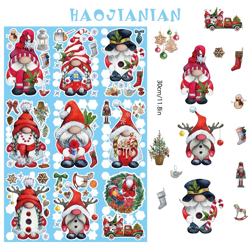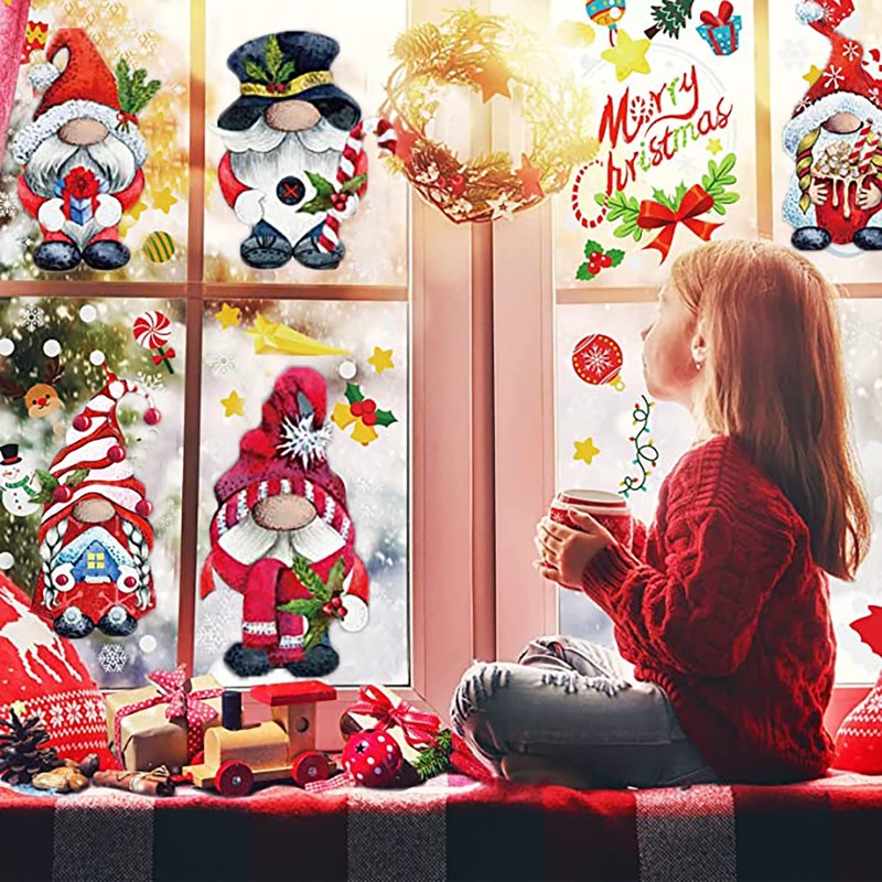 - CHRISTMAS GNOMES WINDOW CLINGS — Christmas window stickers are double-printed, it clearly can be seen from indoor or outdoor. 9 sheets of colorful vivid Christmas Gnomes glass clings, 2 sheets of snowflakes and dot point in different sizes, total of 103pcs in the package.