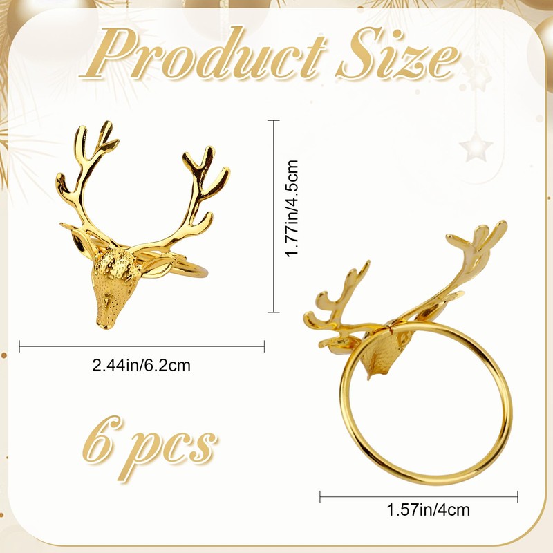 Christmas Gold Reindeer Napkin Rings, 6 Pcs, Deer Head Napkin Rings For Christmas Lunch Party Holiday Wedding Table Decoration