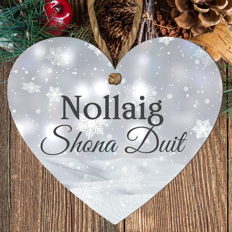 Christmas Heart Plaque - Choose from 4 Designs: Merry Christmas, Nollaig Shona Duit, Nollaig Chridheil, Nadolig Llawen, Perfect for Holiday Décor (Irish - Nollaig Shona Duit)