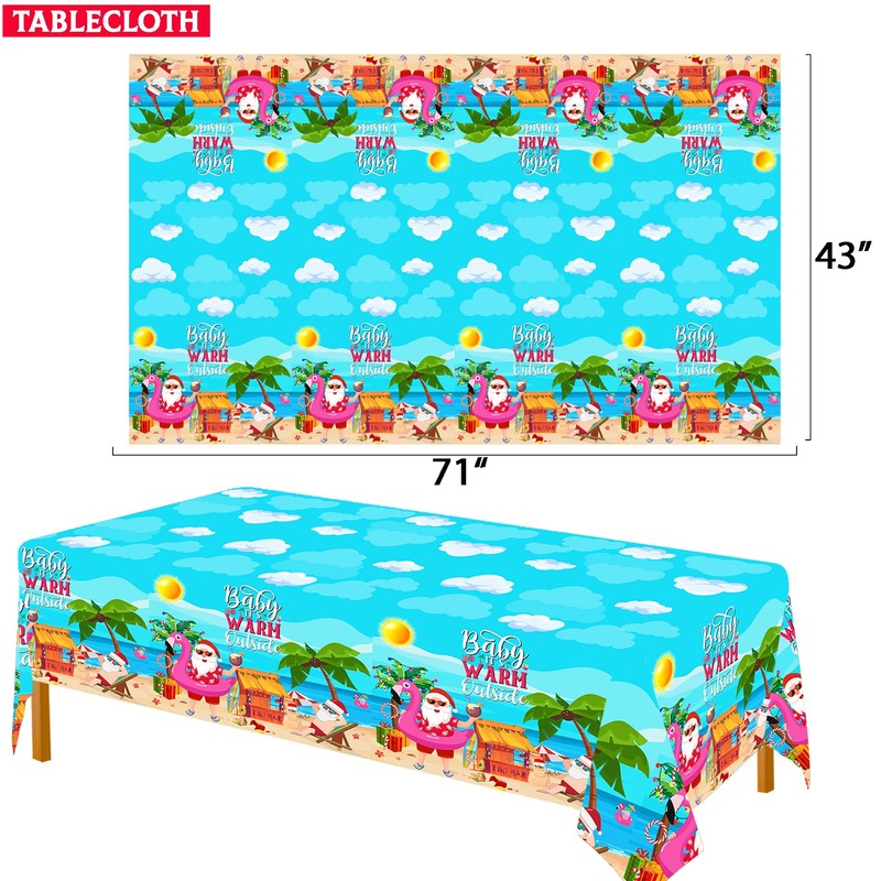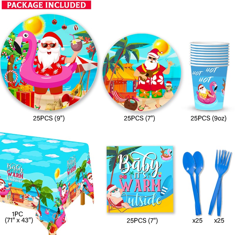 Christmas in July Decorations,151PCS Christmas in July Party Plates and Napkins Set(Serves 25),Includes Plates,Napkins,Cups,Tablecloth,Fork and Spoon for Christmas in July Hawaiian Party Decorations