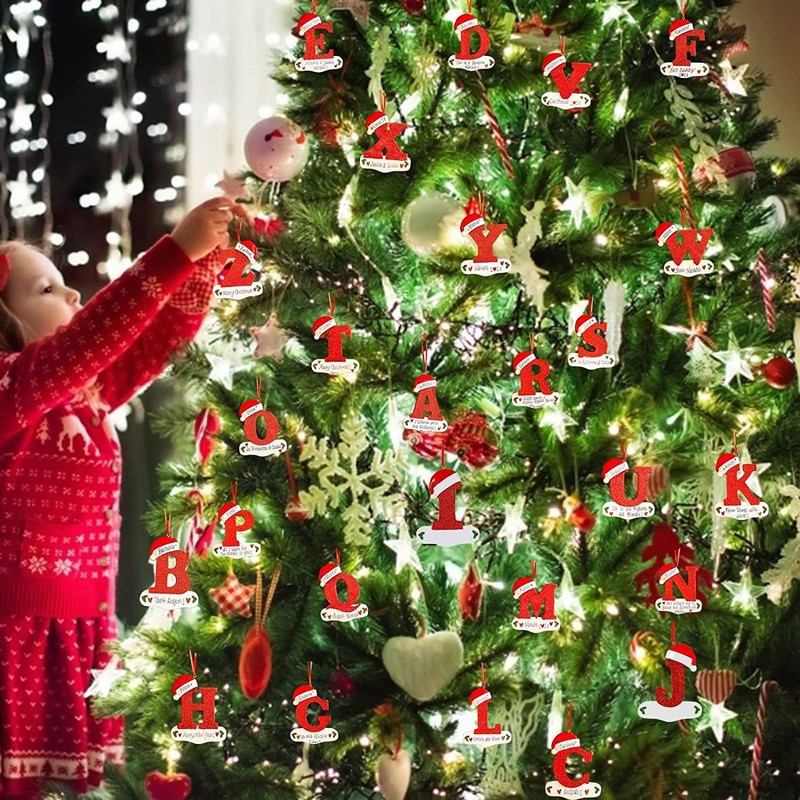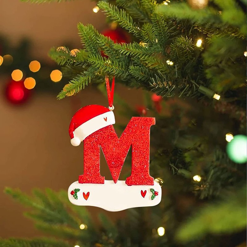 Christmas Initial with Red Hat Christmas Tree Ornaments Personalized DIY Christmas 26 Letters Ornaments Christmas Decoration Xmas Tree Hanging Decor (M)