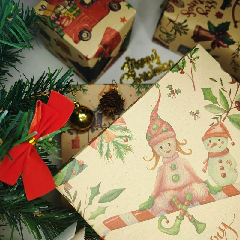 Product Name:Christmas Kraft Gift Wrapping Paper 6 Sheets 6 Designs