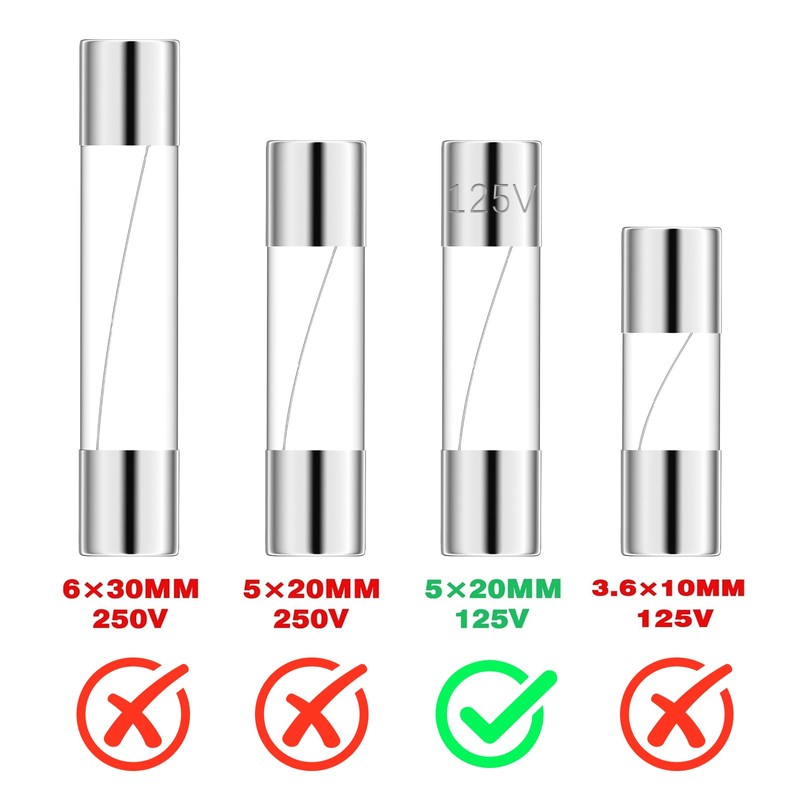 • ☛ Glass Fuse Size ☚ (Diameter x Length) 5x20 mm/0.2x0.78 Inch