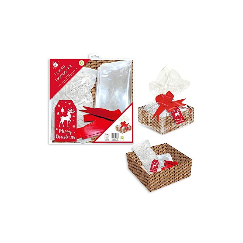 Christmas Make Your Own Hamper Kit Empty Gift Box with Ribbon Tissue & Cello Wrap