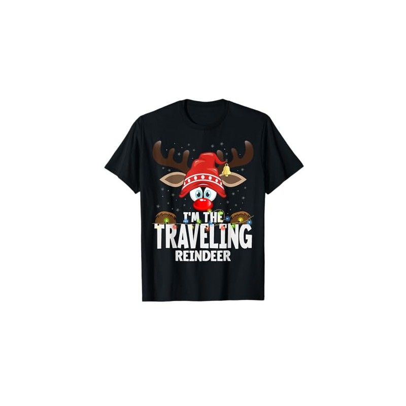 Christmas Matching I'm The Traveling Reindeer T-Shirt, Small, Black