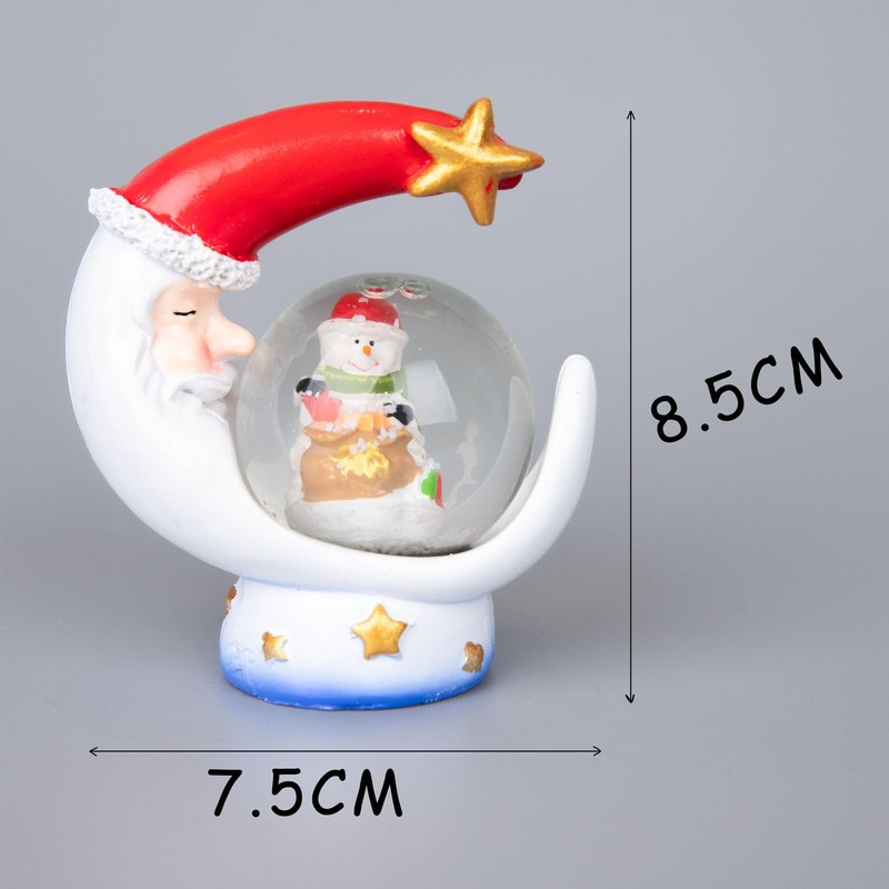 Christmas Mini Snowglobe Water Ball Snow Dome Features Santa,Reindeer,Snowman,Teddy Scene Resin Moon Shape Base- 5.5x7cm - Christmas Table Mantel Decorations