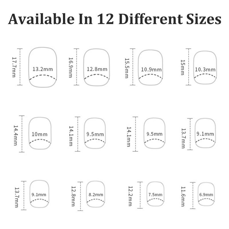 There are 12 different sizes assorted, and you can always find the right size for each finger, no matter what size your nail is.
