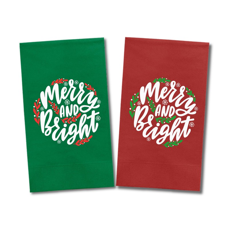 - "MERRY AND BRIGHT" NAPKINS - These Christmas napkins are exactly what you need to set the table for Christmas Day this year!