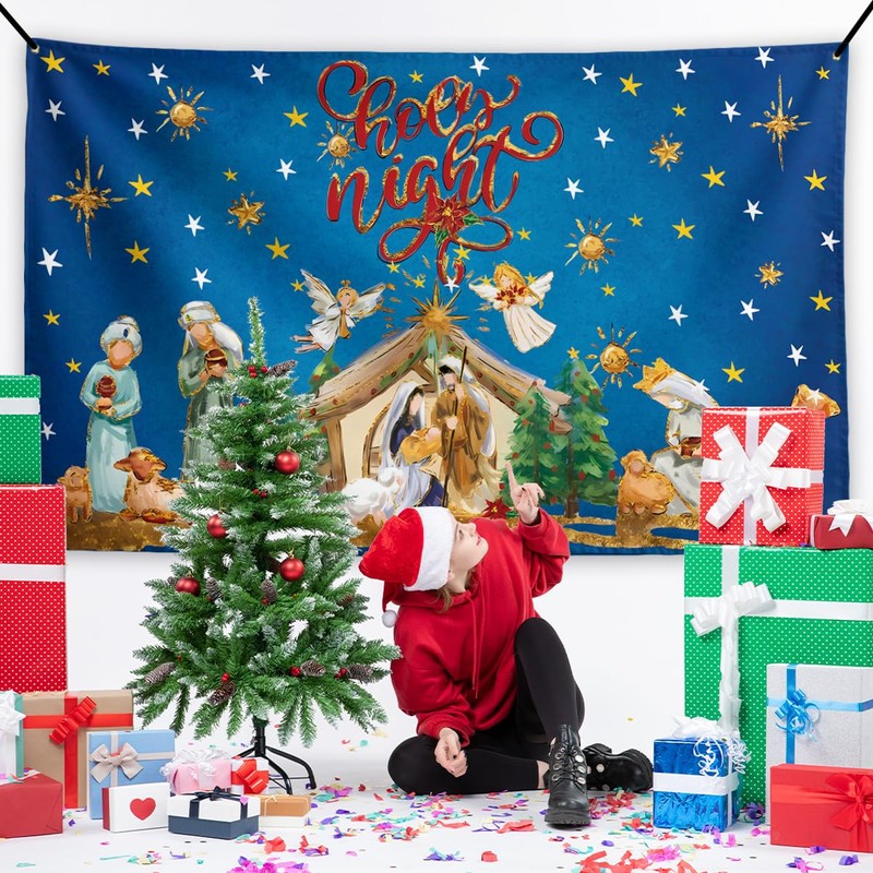 Christmas Nativity Backdrop Holy Nativity Banner Religious Scene Decor Christmas Nativity Decorations for Home Party