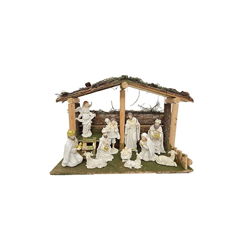 Christmas Nativity Set / Nacimiento Set Ivory Color 6" Inch Home Decor + Wooden Nativity Stable