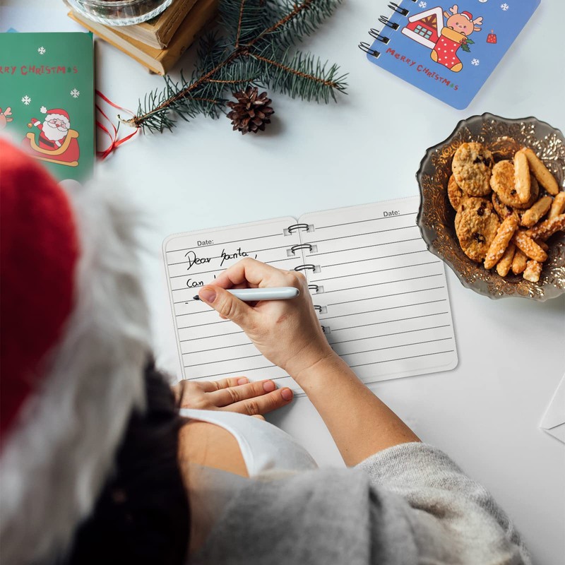 - Christmas pattern design - Portable notebook with Christmas element, Santa, reindeer, snowman, Christmas tree, snowflake, Christmas stocking etc. Cute cartoon pattern cover design, loved by children.