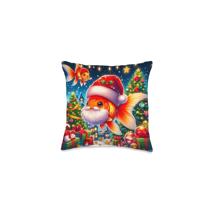 Christmas Oranda Goldfish Santa Fancy Goldfish Lovers Art Throw Pillow