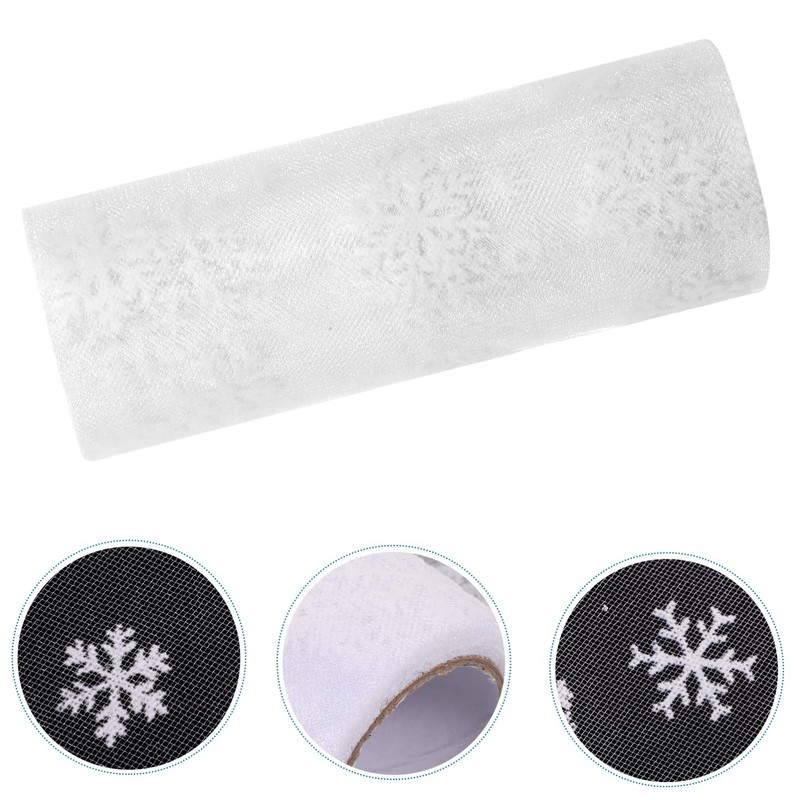 - Christmas Snowflake Tulle Roll Glittering Organza Gauze Snowflake Ribbon for Christmas Decoration Wrapping Party Decoration