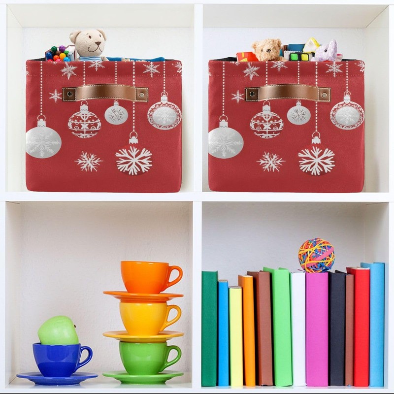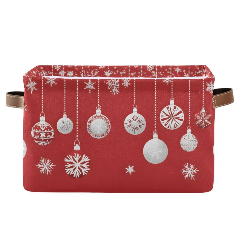 Christmas Ornament Border Snowflak Storage Basket,Large Storage Bin Fabric Collapsible Organizer Bag with Handles 15x11x9.5 inch