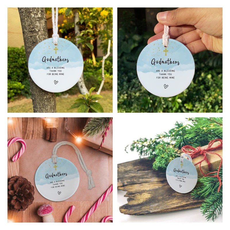 - 🌲[Unique Double Sided Printing Design] This personalized godmother ornament is made of high quality white ceramic, the glaze is glossy and beautiful, smooth to the touch, not rough, the colorful pattern printed on both sides is clear and delicate, the pattern is permanently fused, this is a godson goddaughter to godmother mother's day gift to show appreciation. Your gift can be kept for a long time, will not crack, keep the original appearance and vitality! The perfect Christmas gift for your godmother.