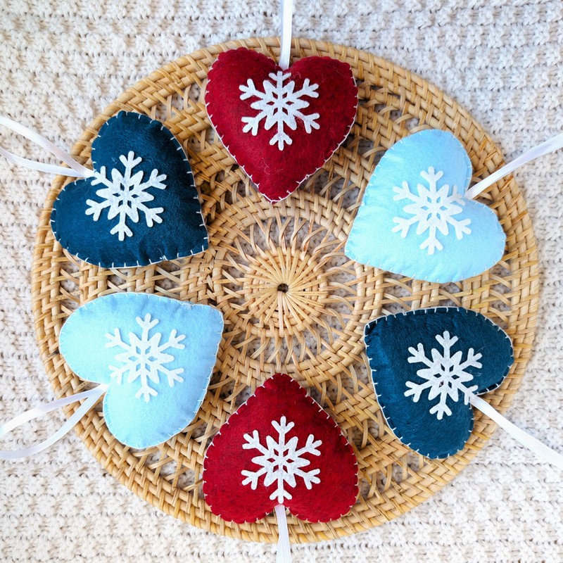 - Handmade Scandinavian Style: These festive snowflake felt hearts are meticulously handcrafted to bring a cozy and traditional Nordic feel to your Christmas tree.