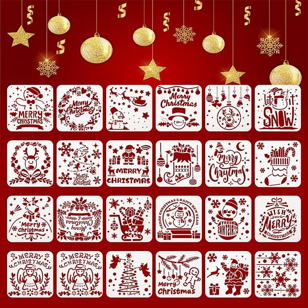 - Including:Christmas Drawing Painting Stencils includes 24 Pack 6" X 6" Stencils.