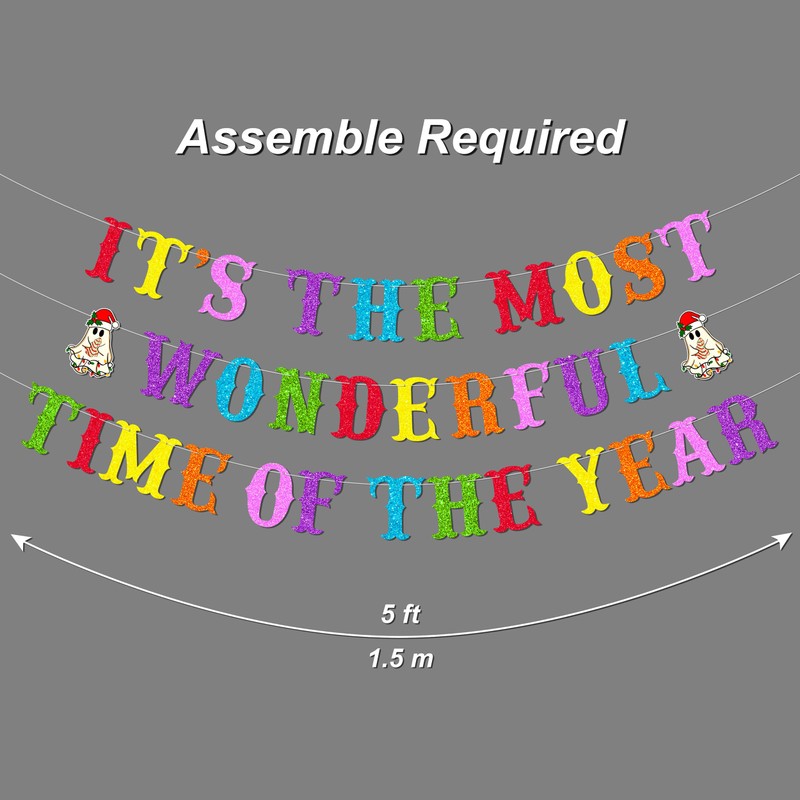 - Festive Decor: This vibrant, colorful banner features the phrase "It's the Most Wonderful Time of the Year" in glittery letters for a cheerful holiday display