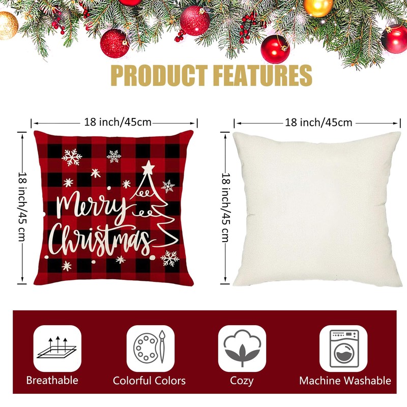 - 【4 Pack Christmas Pillow Covers】Refresh your room with these seasonal throw pillow covers and mix and match them with other decorative pillows or holiday decorations for a cozy atmosphere. Throw pillow covers for bed come in a set of 4 (inserts not included). These covers are designed to fit 18 x 18 inch inserts, and feature a pattern on the front with no printing on the back.