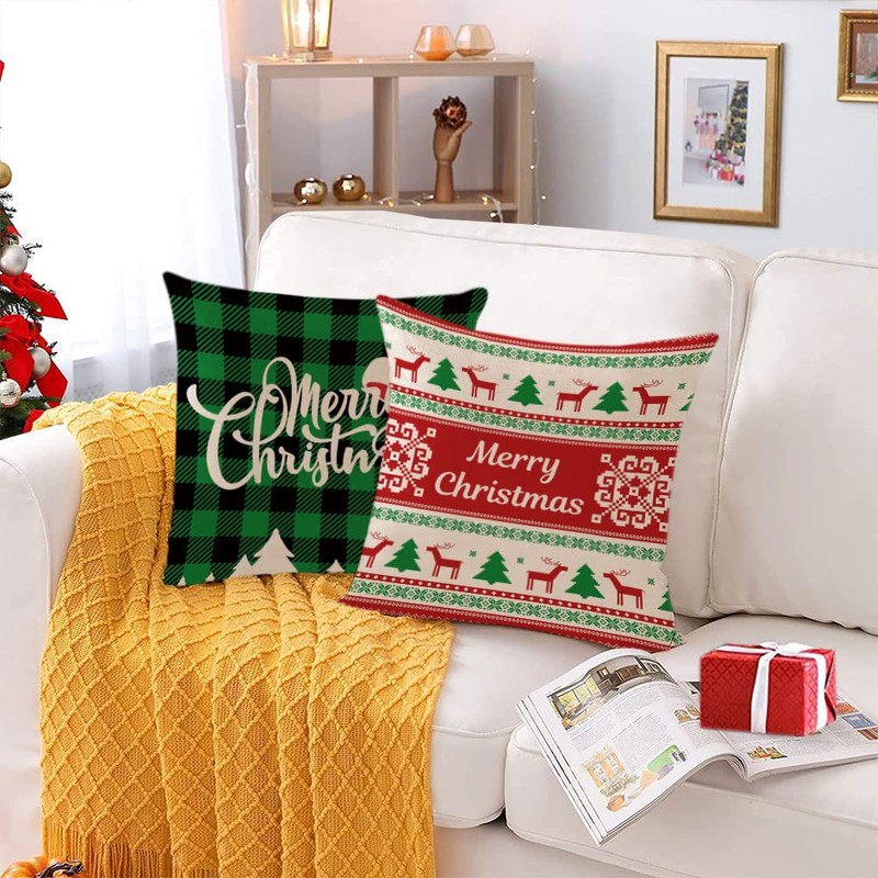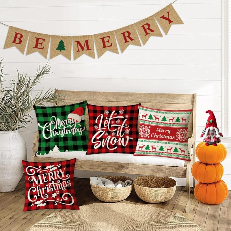 - ★ MATERIAL★ :The set of 4 Christmas pillow covers are made of 100% cotton linen. Extra thick linen, thicker and stronger than ordinary linen,soft and skin-friendly, no fading or abrasion.These linen Christmas pillow cases perfectly math with all styles of furniture, such as bed,couch,sofa,or chair.Merry Christmas outdoor throw pillows are the perfect addition to your Christmas home decor.
