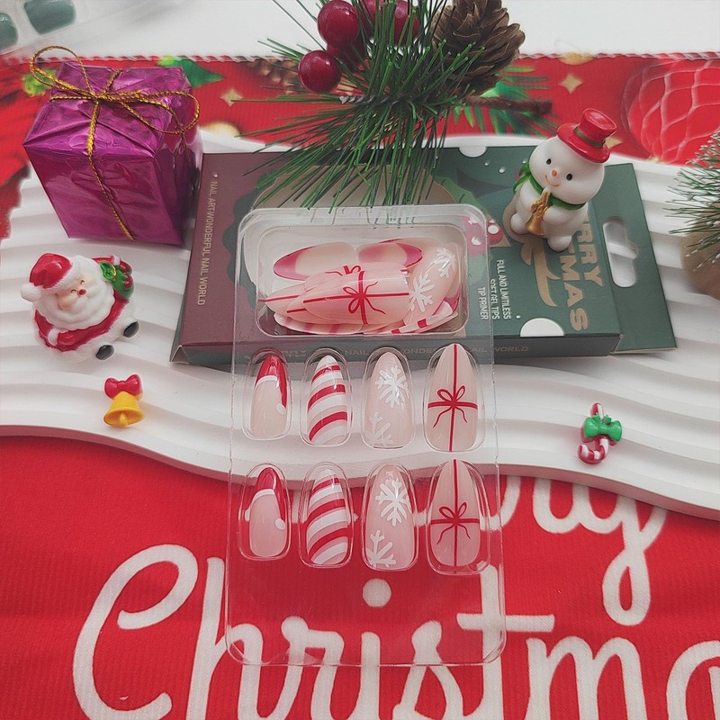 - Package Included:You will get 24pcs Christmas press on nails,1pcs jelly glue stickers,1pcs alcohol pad,1 nail file, 1 wooden stick.