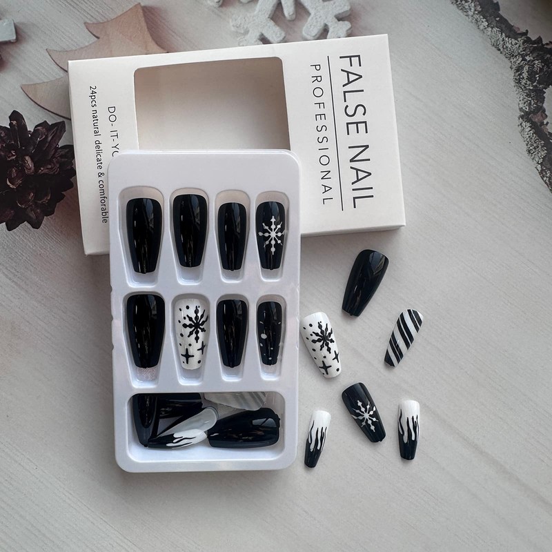 Product Name: Black Snowflake False Nails