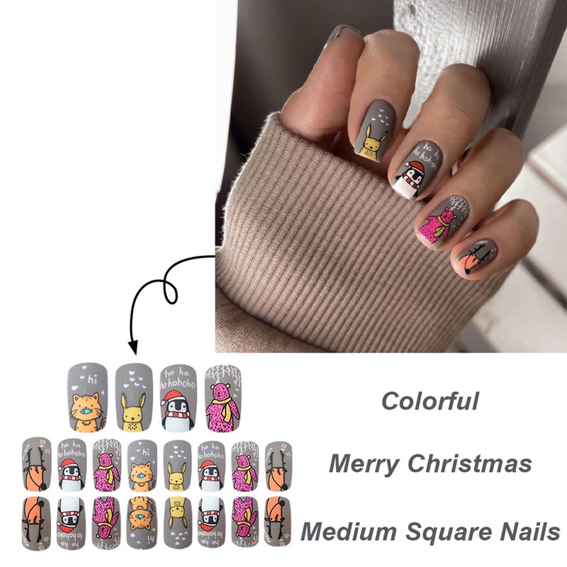 - Christmas Nails Kit: Christmas press on nails feature cute animals with designs. Wearing it makes you more charming and easily creates a strong atmosphere of Christmas joy, becoming the highlight of the festival!