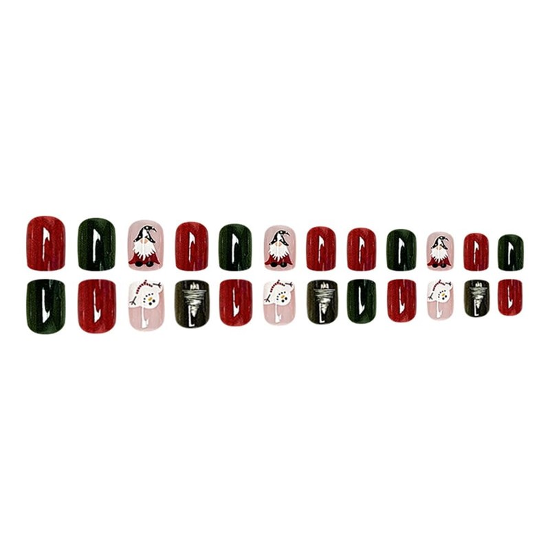 Christmas Press on Nails Santa Claus Fake Nails Short Square Glue on Nails Red Green Acrylic Nails Full Cover False Nails with Designs Stick on Nails Glossy Artificial Nails for Women Xmas Manicure