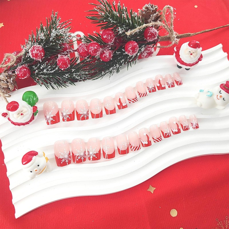 - High Quality Material: Xmas fake nails are made of high quality ABS material, the base of the glue on acrylic nails is flexible, which can fit well to your natural nail, without hurting our nail edges, the top of the false nail is stronger
