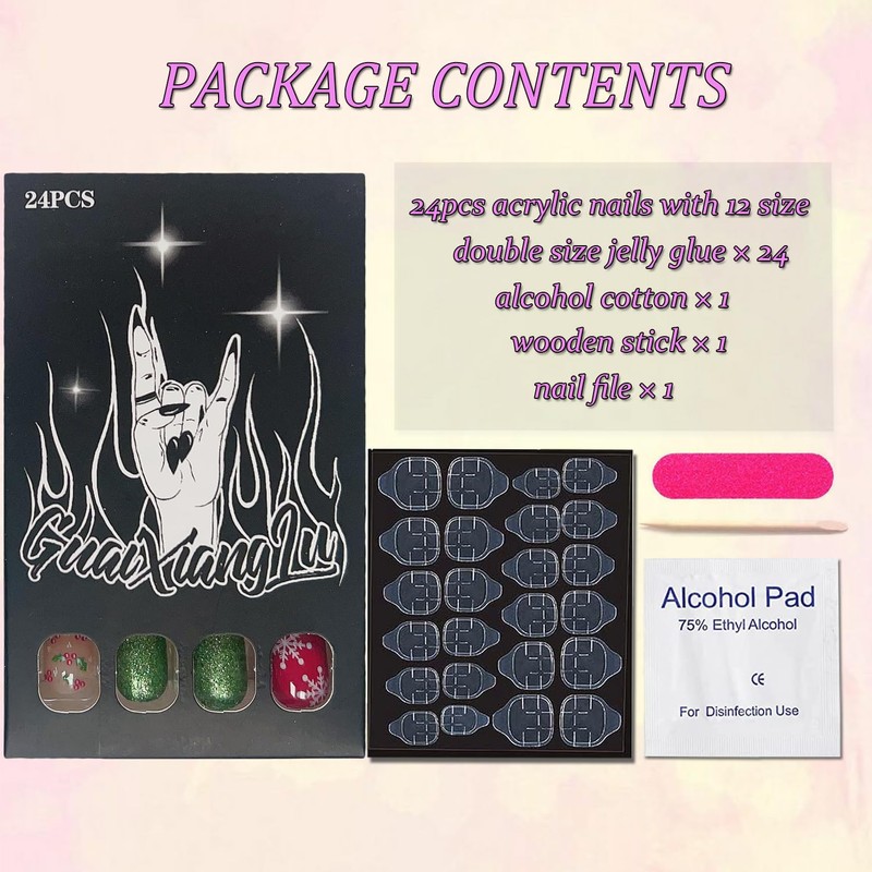 - 【Material】These Christmas manicure press on nails with exquisite designs are made of high-quality ABS environmental friendly acrylic materials,In terms of health, you can rest assured that it will not cause any harm to you.