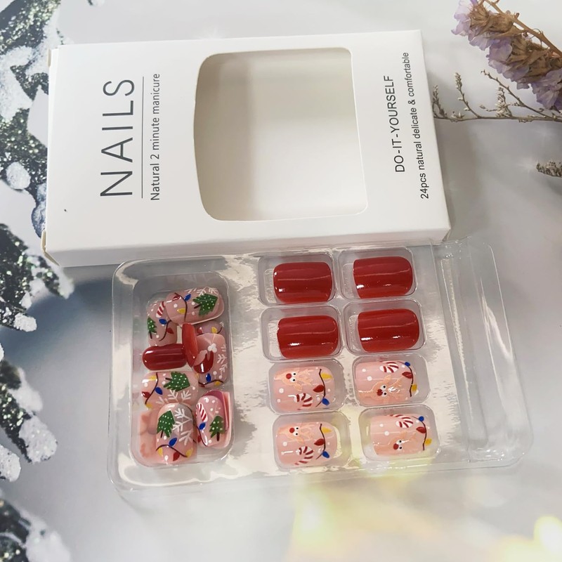 - 🎄Package Include: You will receive 24pcs Christmas fake nails, 24pcs double-side glue stickers, 1pcs nail file, 3 wooden stick, don’t need to purchase anything else.