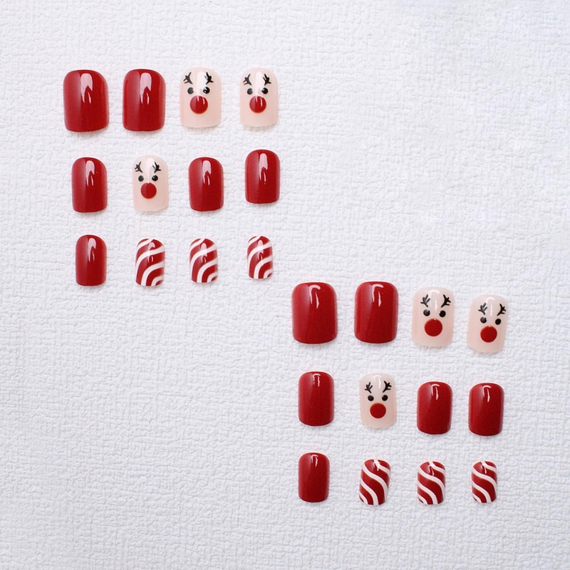 - Package Includes: 24 pieces Christmas fake nails, 1 sheet of 24 pieces jelly glue, 1 piece of mini nail file, 1 piece of wooden stick and 1 piece alcohol pads. Crafted from durable acrylic, enjoy long-lasting use without worrying about chipping or fading.