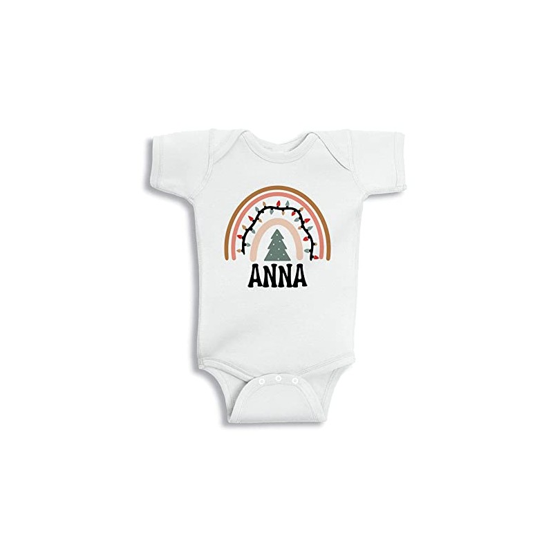 - This Christmas rainbow design with lights hanging over a Christmas tree is perfect just in time for Christmas! The custom name adds a nice specialized personalization, so it makes a perfectly special Christmas gift!