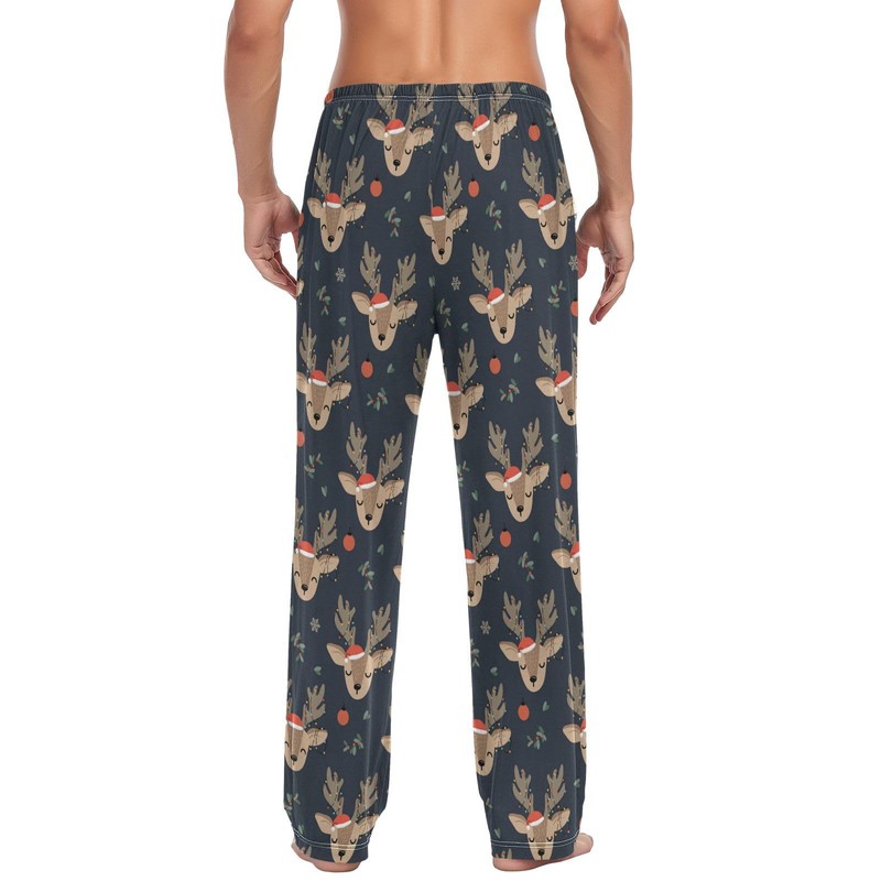 Christmas Reindeer Snowflake Men's Pajama Pants With Pockets - Drawstring Lounge Bottoms for Sleep and PJ