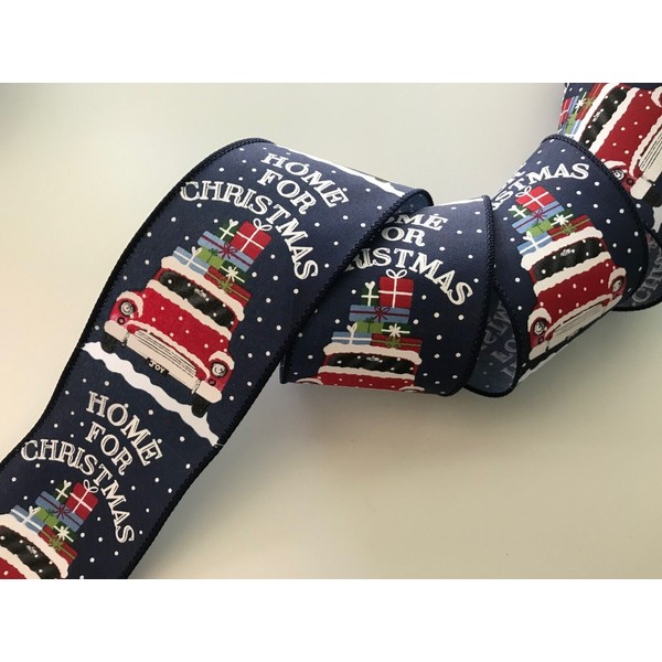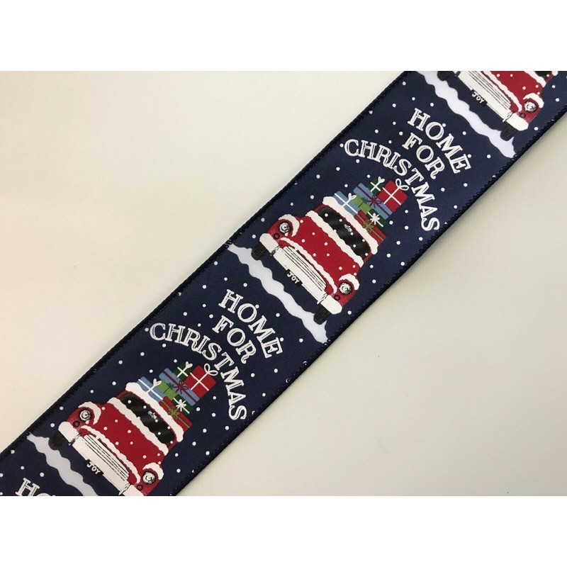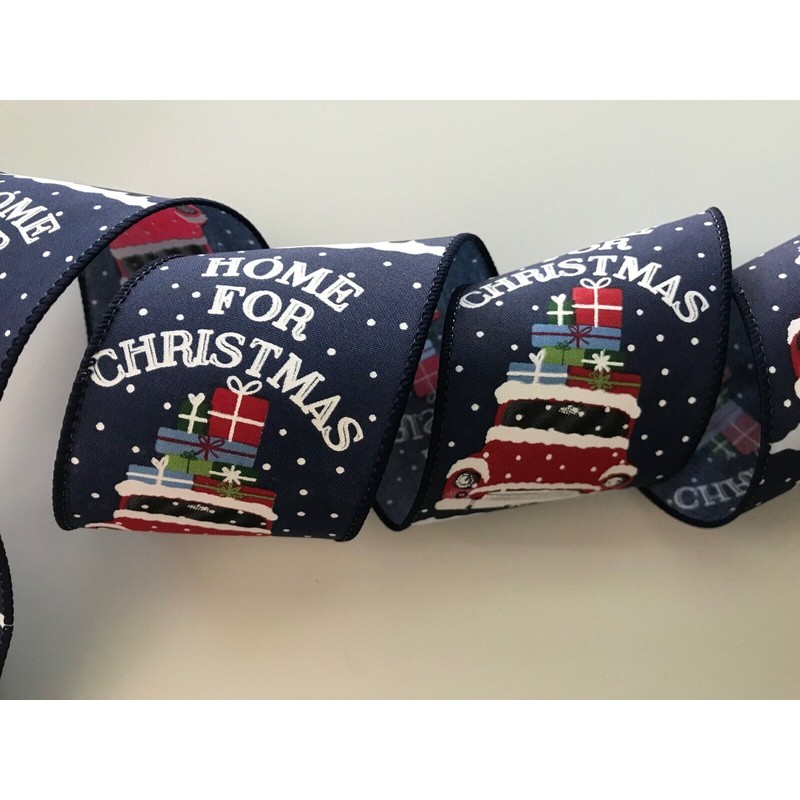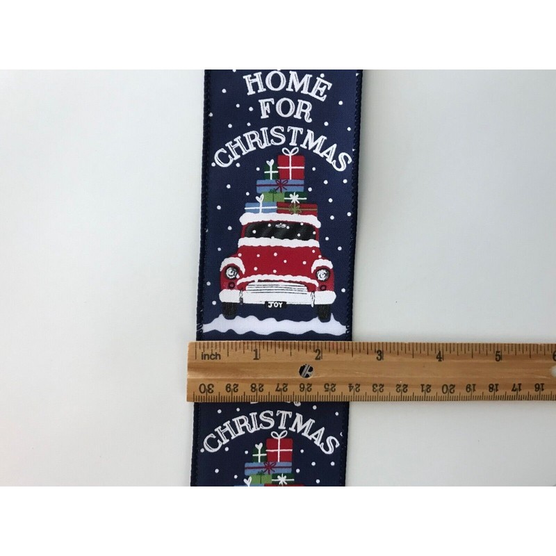 Christmas Ribbon, Home for Christmas, 2 1/2" Wide, Wired Edge, 5 YARDS
