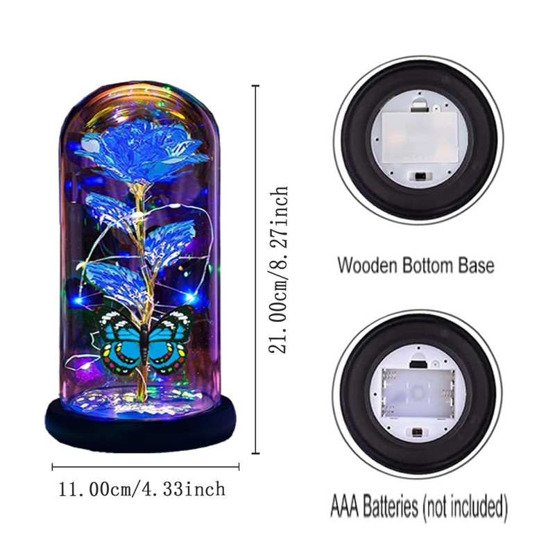Christmas Rose Gifts for Women Mom Wife Her,Womens Gifts for Christmas,Light Up Rose Flower Gifts for Women, Christmas Mom Gifts,Glass Rose Butterfly Gifts for Sister, Birthday Gifts for Mom Blue